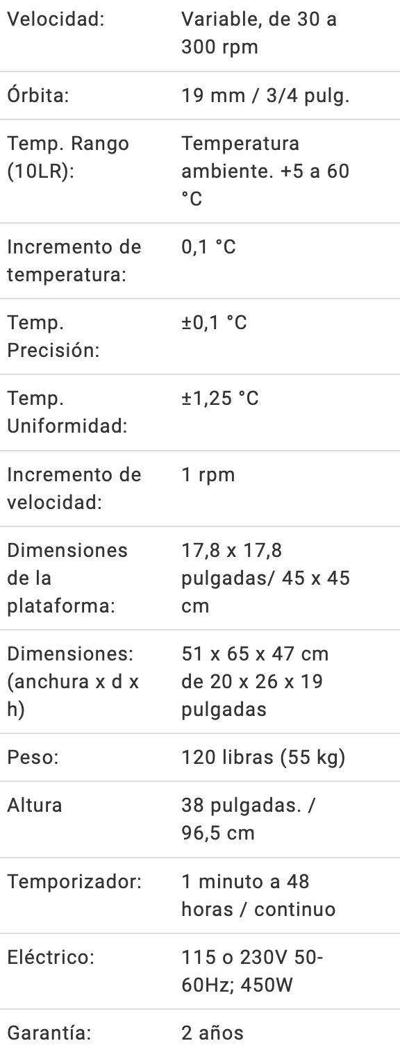 • Órbita circular horizontal de 19 mm para aireación y mezcla