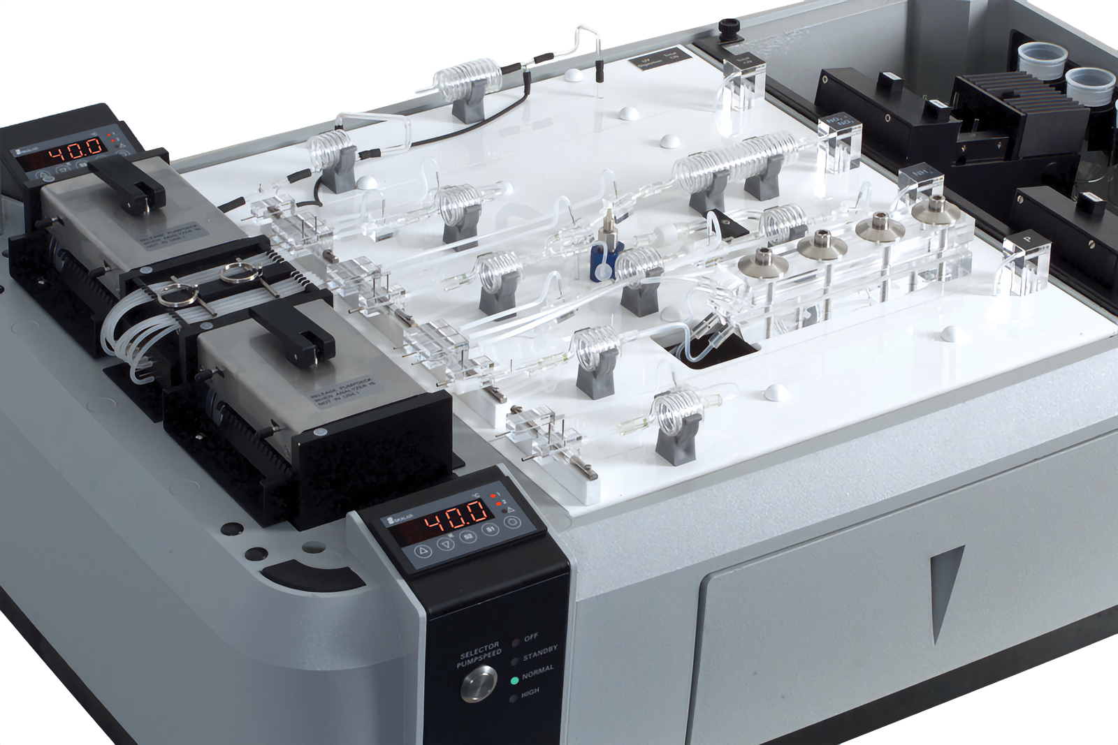 Los Analizadores Automatizados Sanseries de Química Húmeda también conocidos como Analizadores de Flujo Continuo han sido diseñados como sistemas modulares para satisfacer las necesidades de los laboratorios que procesan algunas muestras o grandes volúmenes de muestras. Sobre la base del análisis de flujo continuo (CFA) o también llamado técnica de análisis de flujo segmentado (SFA), se pueden realizar hasta 16 mediciones analíticas (dependiendo del modelo) en una sola muestra simultáneamente. Con la adición de válvulas de enjuague y software, Los analizadors Sanseries se pueden automatizar con funciones de puesta en marcha, apagado, diluciones, repeticiones, limpieza y almacenamiento de datos sin procesar.