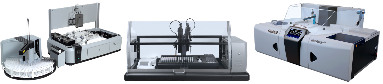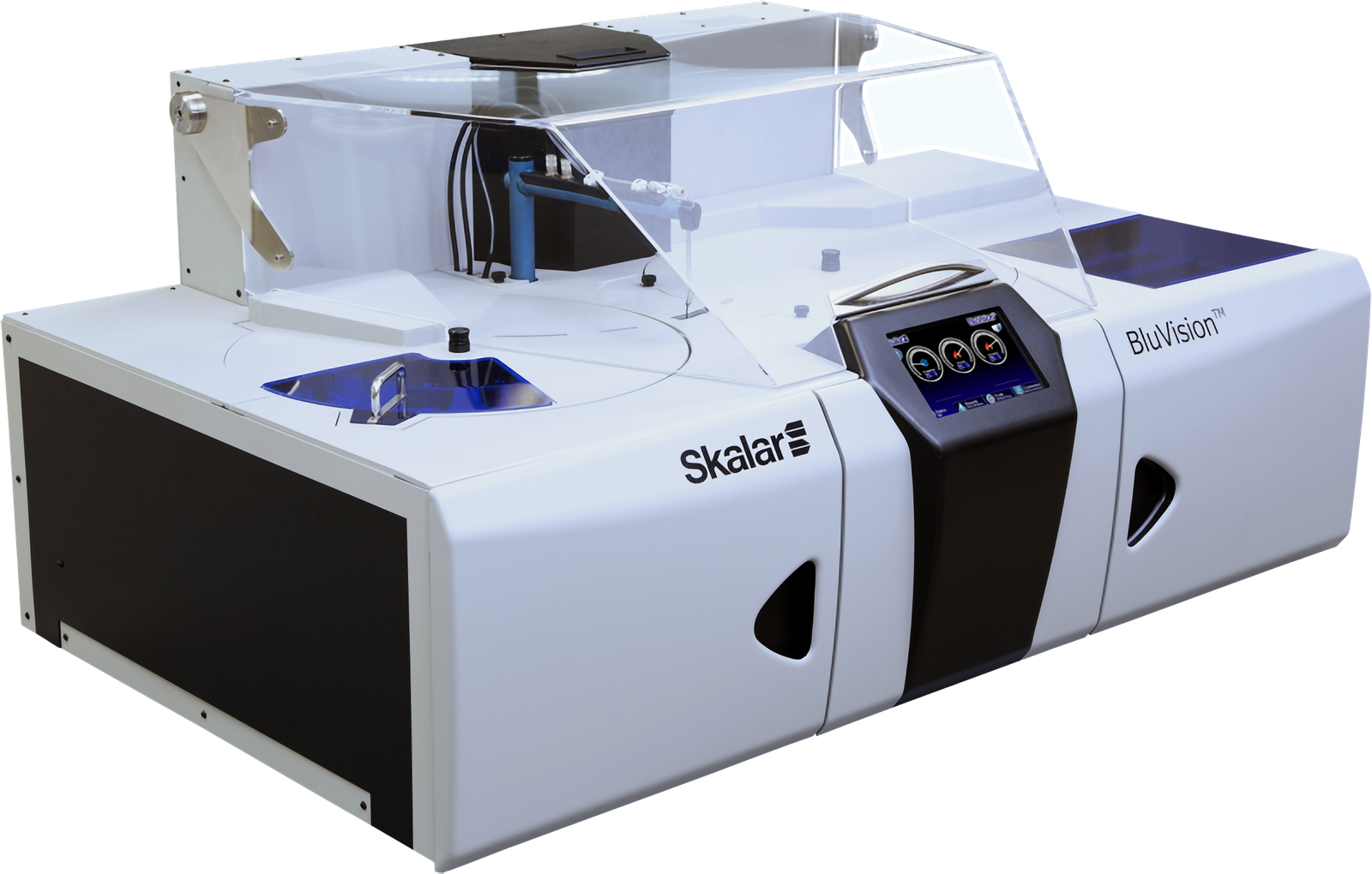 El analizador discreto BluVision™ está totalmente controlado por computador. El instrumento tiene una pantalla táctil integrada, que muestra toda la información relevante del instrumento, por ejemplo, del estado del analizador, las temperaturas de las bandejas y cubetas de muestreo. Además, una serie de comandos se pueden ejecutar desde esta pantalla, tales como la carga del bloque de las cubetas, el cambio de filtros, etc. Para correr el análisis, recopilar y calcular los resultados, el analizador utiliza un paquete de software comprensivo, el DiscreteAccessTM, que cumple con todos los requisitos actuales de laboratorio. Una interface de usuario fácil de usar permite al operador poner en marcha el analizador en cuestión de segundos. Cada corrida de análisis puede ser configurada por lotes o aleatorio. Para cada muestra, el usuario escribe la identificación de la muestra o los baja del LIMS, luego, selecciona los parámetros analíticos deseados para ser analizados e inicia el analizador.